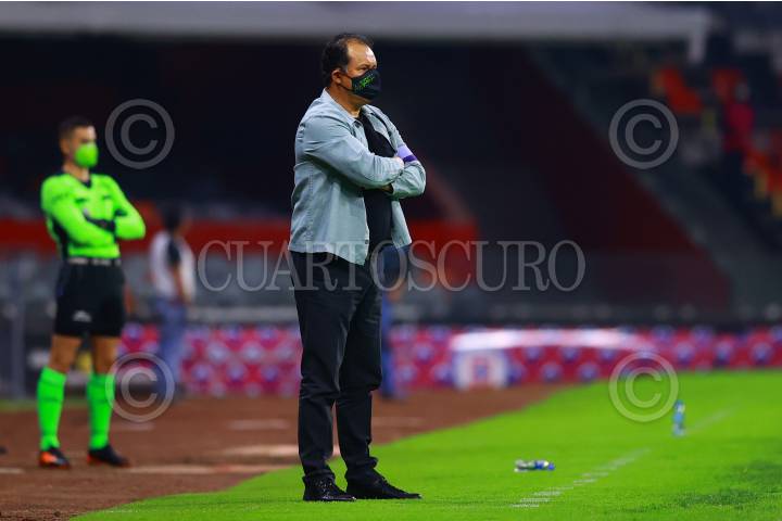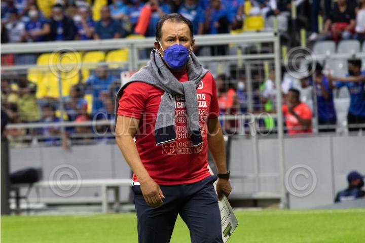 Juan Reynoso, entrenador del Cruz Azul, durante el partido contra el América, en el Estadio Azteca.