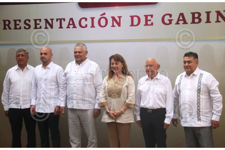 CUERNAVACA, MORELOS, 11SEPTIEMBRE2024.- Margarita González Saravia, gobernadora electa del estado, presento a los integrantes de su gabinete de seguridad. En la Secretaria de Seguridad y Protección Ciudadana, se designo a Miguel Ángel Urrutia Lozano, a Juan Salgado Brito como titular de la Secretaría de Gobierno; Javier García Chávez, estará al frente de la Oficina de la Gubernatura; Edgar Maldonado Ceballos como consejero jurídico y Mario Caballero Luna fungirá como coordinador de asesores. FOTO: MARGARITO PÉREZ RETANA/CUARTOSCURO.COM