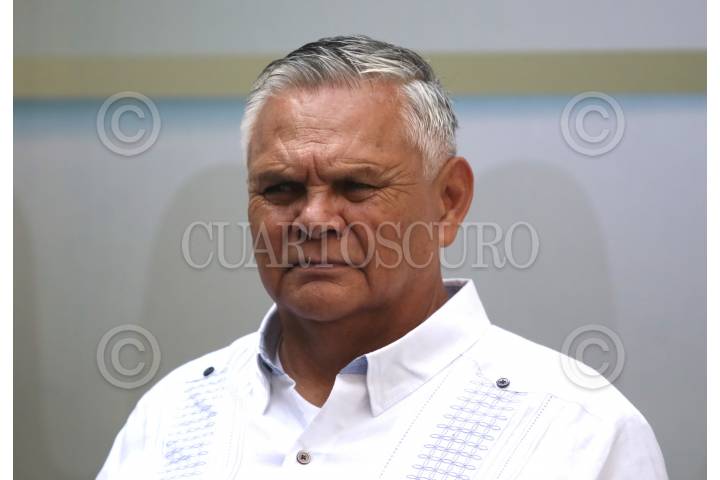 CUERNAVACA, MORELOS, 26DICIEMBRE2024.- Conferencia de prensa encabezada por el secretario de Gobierno, Juan Salgado Brito (al centro), acompañado de Mirna Zavala, secretaria de Hacienda, Viridiana Aydee León Hernández, rectora de la Universidad Autónoma del Estado de Morelos, y el líder del Sindicato de Trabajadores Académicos de la UAEM, Mario Cortes Montes; donde se anuncio que mañana se dispersara el aguinaldo de los 6500 trabajadores universitarios. Este anuncio se da después de que el STAUAEM anunciara movilizaciones para exigir el pago de este derecho laboral. El gobierno estatal aporto 136 millones de pesos y el gobierno federal otra igual para alcanzar la cifra de 270 millones. La máxima casa de estudios del estado arrastra un déficit de 900 millones que se adeudan principalmente al Instituto Mexicano de Seguridad Social. En la imagen, Mario Cortes Montes, que en septiembre pasado fue reelecto por séptima vez consecutiva como Secretario General del Sindicato de Trabajadores Académicos de la Universidad Autónoma del Estado de Morelos. FOTO: MARGARITO PÉREZ RETANA/CUARTOSCURO.COM