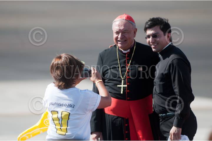 SILAO, GUANAJUATO, 23MARZO2012.- El arzobispo de Guadalajara Juan Sandoval Iñiguez durante la llegada del Santo Padre Benedicto XVI en el Aeropuerto Internacional de Guanajuato. FOTO: MOISÉS PABLO /CUARTOSCURO.COM