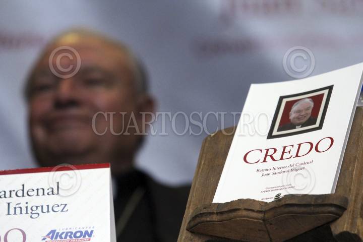 MÉXICO, D.F., 26ENERO2014.- Juan Sandoval Íñiguez presentó su libro "Credo" al finalizar la misa de mediodía en la Catedral Metropolitana. FOTO: IVÁN STEPHENS /CUARTOSCURO.COM