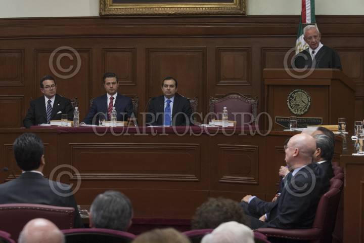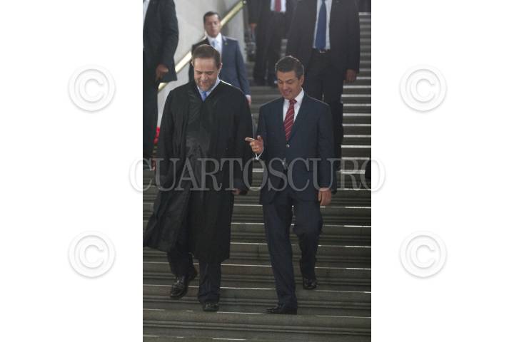 MÉXICO, D.F., 13DICIEMBRE2012.- Enrique Peña Nieto acudió como invitado especial al 2o Informe del Magistrado Juan Silva Meza, como magistrado presidente de la Suprema Corte de Justicia de la Nación. FOTO: JUAN PABLO ZAMORA /CUARTOSCURO.COM