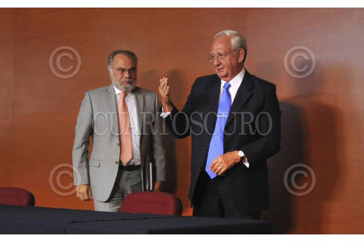MÉXICO, D.F., 08MAYO2014.- Juan Silva Meza, presidente de la Suprema Corte de Justicia de la Nación y José de Jesús Orozco Henríquez, integrante de la comisión interamericana de derechos humanos durante la presentación del informe "Garantías para la independencia de las y los operadores de justicia. FOTO: CUARTOSCURO.COM