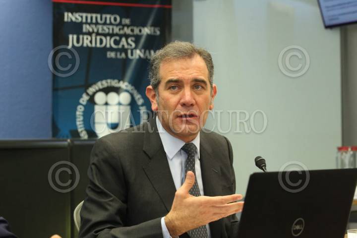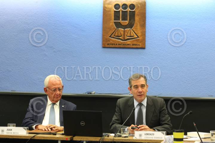 Juan Silva Meza y Lorenzo Cordova durante el foro “Debilitamiento del Estado de Derecho a través de las restricciones a los órganos de control y garantía de la democracia”.