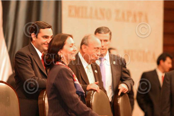 Francisco Gil Díaz, secretario de Hacienda, el diputado panista Juan de Dios Castro, el presidente Vicente Fox Quesada y el senador priìsta Enrique Jackson, firman la convocatoria de la primera Convención Nacional Hacendaria. FOTO: Eunice Adorno/CUARTOSCURO.COM