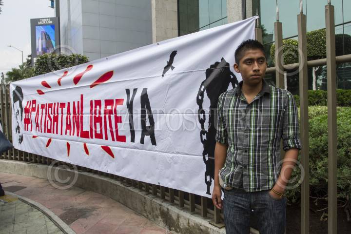 MÉXICO, D.F., 26JUNIO2013.- Diversas organizaciones civiles se manifestaron afuera del Consejo de la Judicatura del Poder Judicial de la Federación para exigir la liberación del profesor indígena Alberto Patishtán, quien cumplió 13 años de los 60 a los que fue condenado por defender a los habitantes de su comunidad el Bosque, Chiapas. En la imagen, Héctor Patishtan, hijo del activista. FOTO: ISAAC ESQUIVEL / CUARTOSCURO.COM