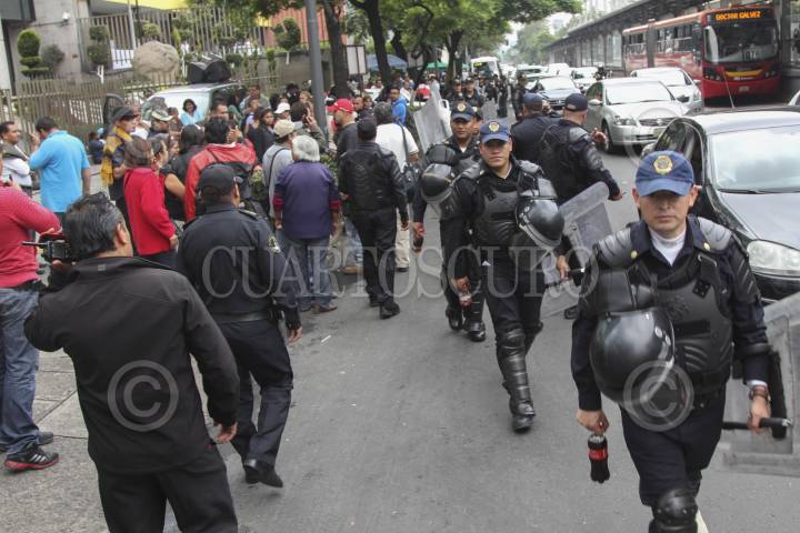 MÉXICO, D.F., 03JULIO2014.- Habitantes de Lomas del Parque en Tultitlan, se manifestaron frente a las instalaciones del Consejo de la Judicatura Federal ubicada en Insurgentes Sur, los inconformes exigieron que magistrados den solución jurídica antes predios invadidos en dicha colonia. Granaderos de la SSP-DF resguardaron las instalaciones. FOTO: SAÚL LÓPEZ /CUARTOSCURO.COM