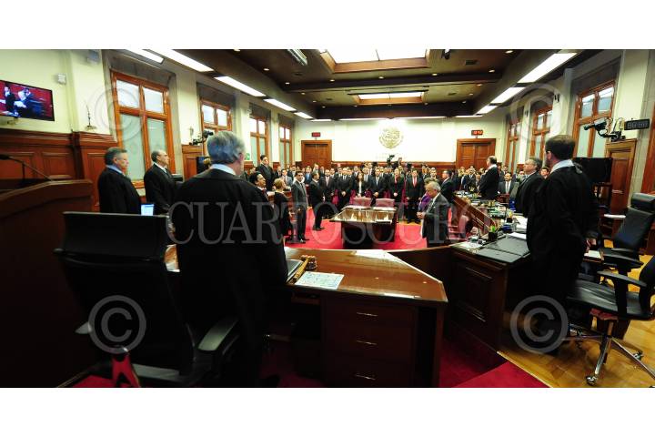 CIUDAD DE MÉXICO, 25FEBRERO2016.- Sesión solemne de los Plenos de la Suprema Corte de Justicia de la Nación (SCJN) y del Consejo de la Judicatura Federal (CJF), en la que 51 Jueces de Distrito rindieron su protesta de Ley y recibieron del Ministro Presidente, Luis María Aguilar Morales sus acreditaciones y distintivos que los acreditan como nuevos juzgadores. FOTO: SCJN /CUARTOSCURO.COM