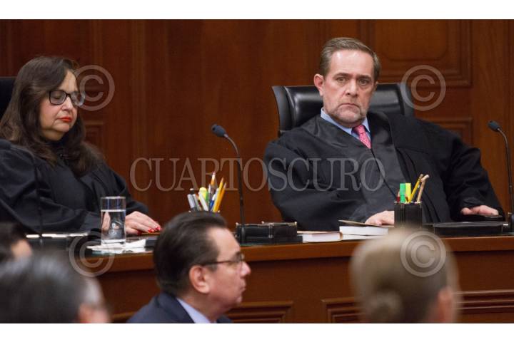CIUDAD DE MÉXICO, 17OCTUBRE2023.- El ministro Luis María Aguilar, en representación de la presidenta de la Suprema Corte de Justicia (SCJN), Norma Lucía Piña, y la magistrada Janine M. Otálora durante la inauguración y mesa del Congreso Internacional “Los Retos de la Judicatura” en la Facultad de Derecho de la Universidad Nacional Autónoma de México (UNAM). FOTO: GALO CAÑAS/CUARTOSCURO.COM
