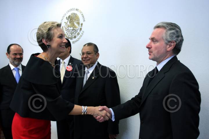 MÉXICO, D.F., 18MAYO2010.- Miembros de la Junta de Coordinación Política del Senado, se reunieron con Judith Anne McGregor, embajadora de Reino. FOTO: CUARTOSCURO.COM