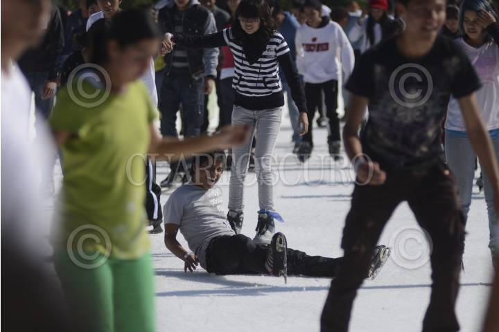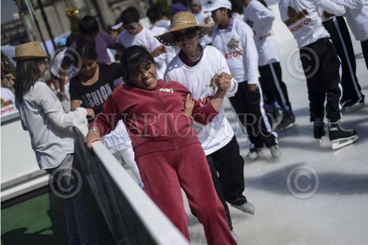 MÉXICO, D.F., 19DICIEMBRE2012.- Niños, jóvenes y familias completas disfrutan de la pista de hielo y los juegos navideños instalados en la plancha del zócalo como parte de la temporada navideña. FOTO: ADOLFO VLADIMIR /CUARTOSCURO.COM