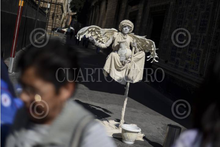 MÉXICO, D.F., 19DICIEMBRE2012.- Una artista urbana realiza ilusión en la Calle Madero. FOTO: ADOLFO VLADIMIR /CUARTOSCURO.COM