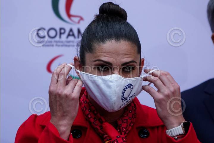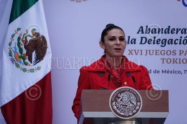 Ana Gabriela Guevara durante el abanderamiento de la Delegación Mexicana que participara en los Juegos Paralímpicos de Tokio 2020