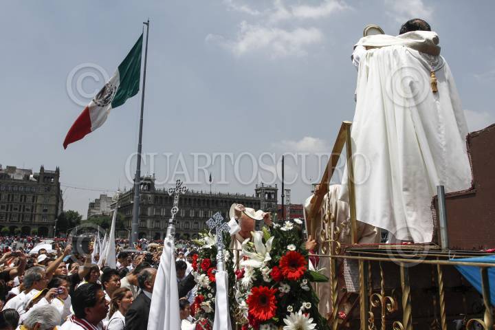 MÉXICO, D.F., 30MAYO2013.- Fieles católicos participaron en la misa y procesión por el Jueves de Corpus Christi, de la plaza Tlaxcoaque a la Catedral Metropolitana. FOTO: ISAAC ESQUIVEL /CUARTOSCURO.COM