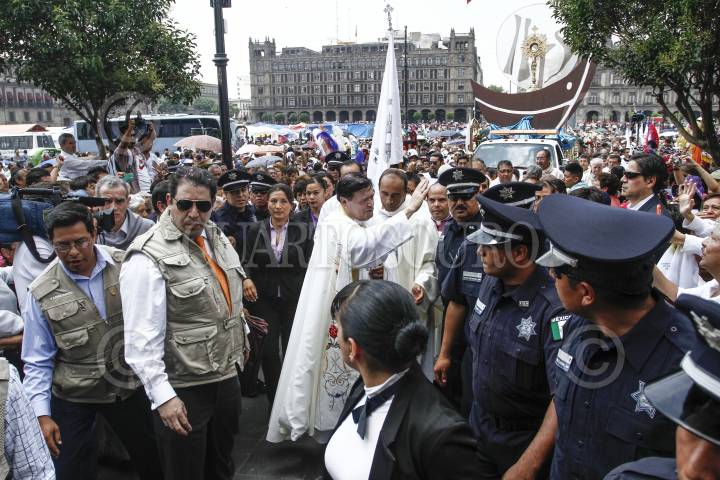 MÉXICO, D.F., 30MAYO2013.- Fieles católicos participaron en la misa y procesión por el Jueves de Corpus Christi, de la plaza Tlaxcoaque a la Catedral Metropolitana, la cual estuvo encabezada por el cardenal Norberto Rivera. FOTO: ISAAC ESQUIVEL /CUARTOSCURO.COM
