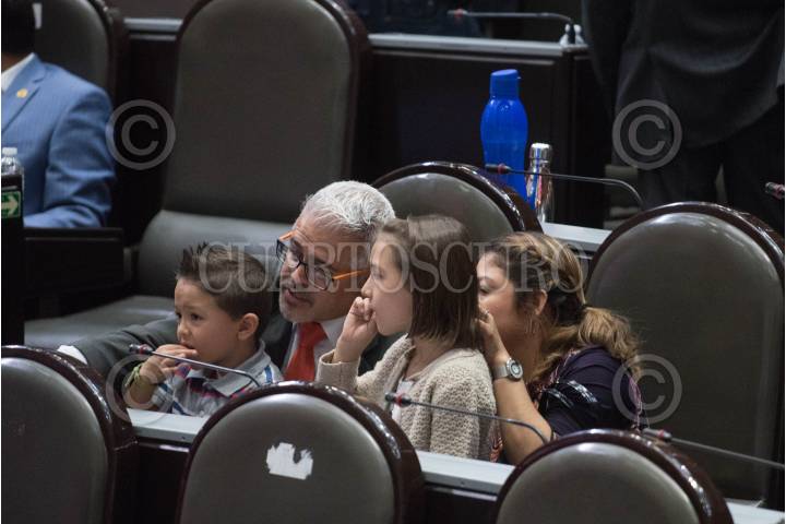 CIUDAD DE MÉXICO, 25ABRIL2019.- Se lleva a cabo la Sesión Ordinaria de la Cámara de Diputados en la que se reforma el artículo 89 de la Constitución Política, en materia de Ratificación de Empleados Superiores de Hacienda, y el artículo 74 de la Constitución Política para impedir la presencia de partidas secretas en el Presupuesto de Egresos de la Federación. En la imagen, Ariel Rodríguez Vázquez, diputado de Movimiento Ciudadano, en compañía de familiares durante la sesión. FOTO: MARIO JASSO /CUARTOSCURO.COM