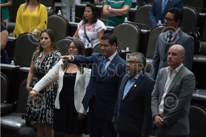 CIUDAD DE MÉXICO, 25ABRIL2019.- Se lleva a cabo la Sesión Ordinaria de la Cámara de Diputados en la que se reforma el artículo 89 de la Constitución Política, en materia de Ratificación de Empleados Superiores de Hacienda, y el artículo 74 de la Constitución Política para impedir la presencia de partidas secretas en el Presupuesto de Egresos de la Federación. En la imagen, toma de protesta de Lidia Pérez Bárcenas como titular de la Unidad de Transparencia de la Cámara de Diputados, por cuatro años, y a Ricardo Álvarez Montiel, como suplente. FOTO: MARIO JASSO /CUARTOSCURO.COM