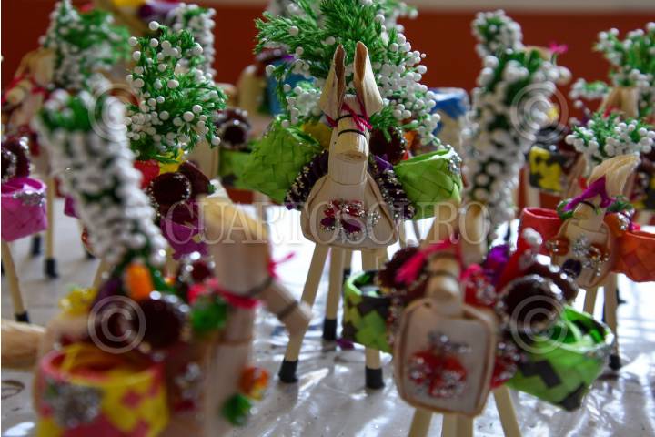 CIUDAD DE MÉXICO, 29MAYO2024.- Vendedoras ofertan las tradicionales mulitas con motivo del Jueves de Corpus Christi. Hechas a mano a partir de hoja de maíz y adornadas con algunos accesorios de pasto y unicel dependiendo el tamaño, las "mulitas" funcionan para recordar que en la Sagrada Eucaristía se encuentra el cuerpo de Cristo. FOTO: GALO CAÑAS/CUARTOSCURO.COM