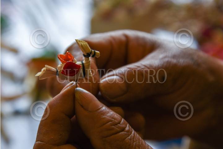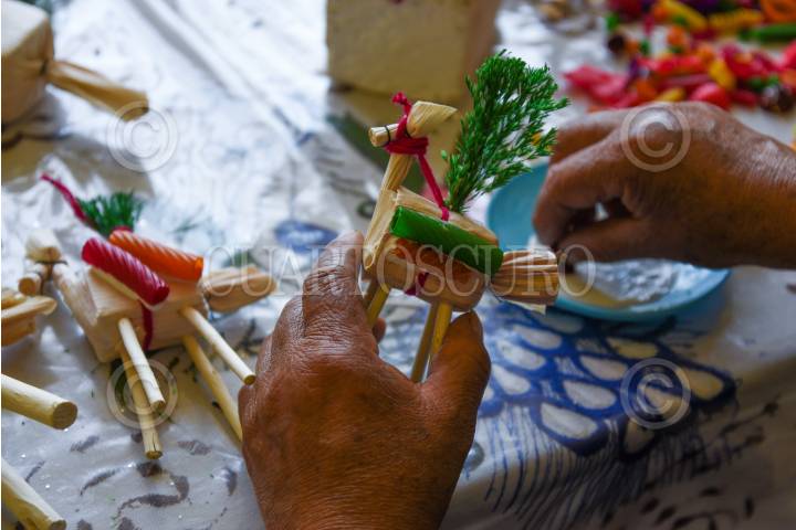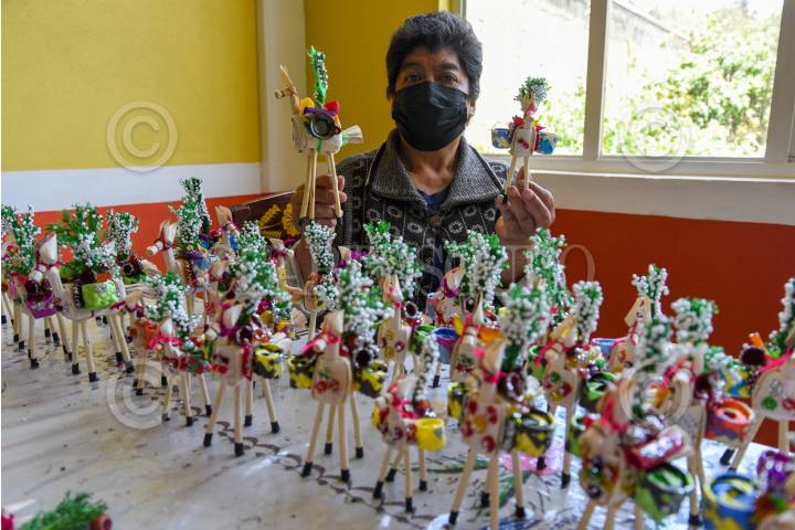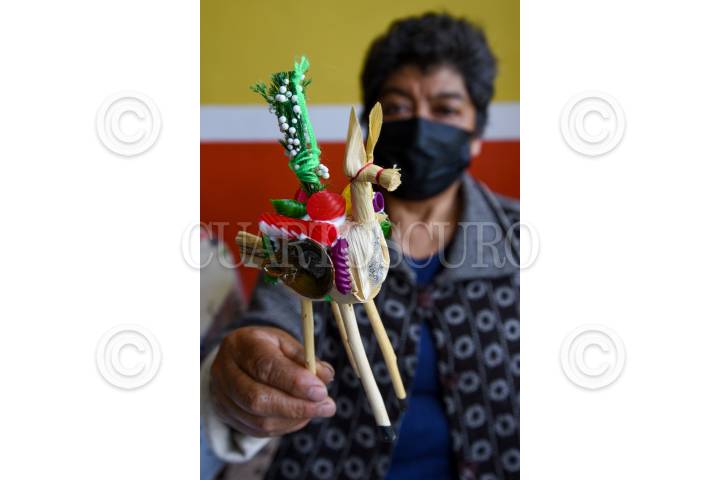 La señora Francisca Hernández tiene 43 años dedicándose a la elaboración de las tradiciones Mulitas para el Jueves de Corpus Christi, debido a la pandemia dejo de hacerlas durante dos años y retomó su elaboración de nueva cuenta, su producción es muy baja ante la incertidumbre de no poderlas vender ya que los corren de los lugares en donde se instalan, solo piden la oportunidad de vender su trabajo y continuar con la tradición.