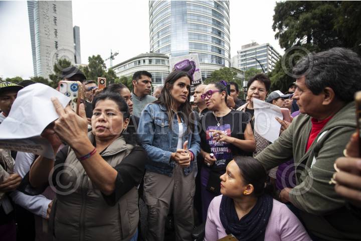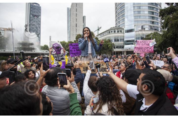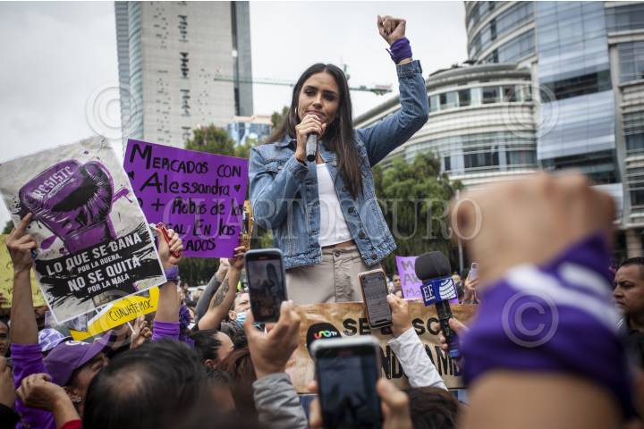 CIUDAD DE MÉXICO, 02SEPTIEMBRE2024.- Alessandra Rojo De la Vega acompañada de simpatizantes ofreció mitin en la Diana Cazadora cerrando la Avenida Reforma para hablar sobre la anulación de la elección en la alcaldía Cuauhtémoc por supuesta violencia de género. FOTO: ANDREA MURCIA /CUARTOSCURO.COM