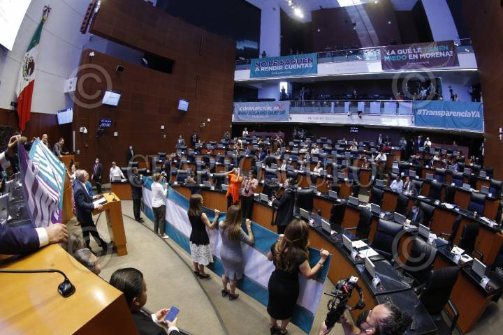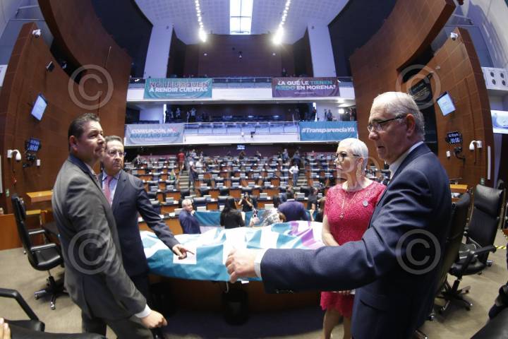 El grupo parlamentario del PAN en el Senado, encabezado por su coordinador, Julen Rementería, tomaron la tribuna de la Cámara Alta exigiendo la designación de los consejeros faltantes del INAI