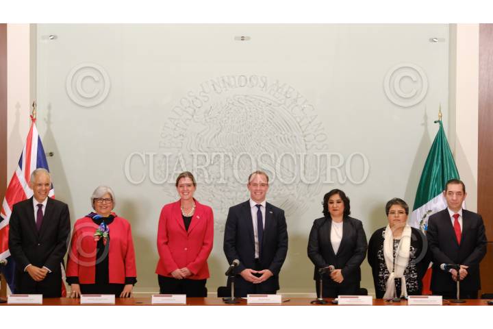 CIUDAD DE MÉXICO, 08AGOSTO2019.- Julián Ventura, subsecretario de Relaciones Exteriores; Graciela Márquez, secretaria de Economía; Corin Robertson, embajadora de Reino Unido en México; Dominic Raab, secretario de Estado para Asuntos Exteriores y de la Mancomunidad del Reino Unido de la Gran Bretaña e Irlanda del Norte; Irma Erendira Sandoval, secretaria de Función Pública; Raquel Buenrostro Sánchez, Oficial Mayor de la Secretaria de Hacienda y Crédito Público (SHCP), y Ricardo Salgado Perrilliat, secretario técnico de la Secretaría Ejecutiva del Sistema Nacional de Anticorrupcion, durante la Firma de un Memorándum de entendimiento en materia de Gobierno Digital, el cual se realizó en la Sala de Usos Múltiples de la SHCP, en Palacio Nacional. FOTO: GRACIELA LÓPEZ /CUARTOSCURO.COM