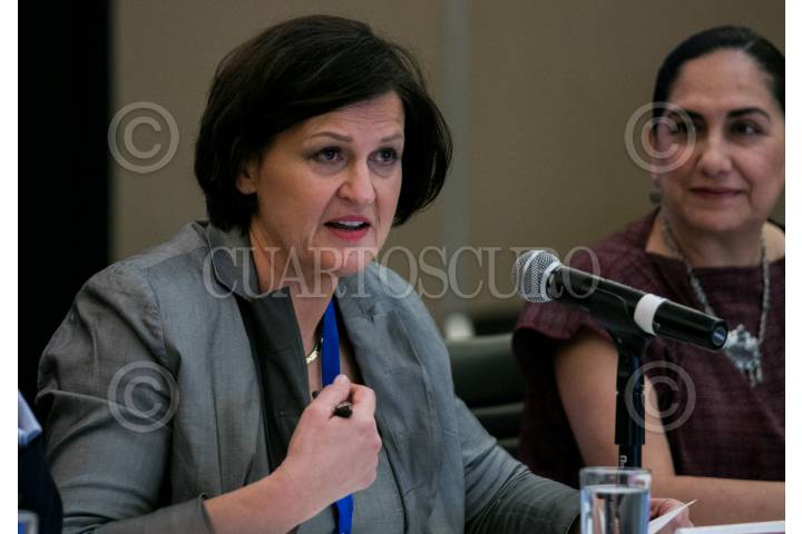 Javier Niño Pérez, funcionario del Servicio Europeo de Acción Exterior; Jolita Butkeviciene, directora para América Latina en la Comisión Europea; Laura Elena Carrillo Cubillas, directora ejecutiva de la Agencia Mexicana de Cooperación Internacional
