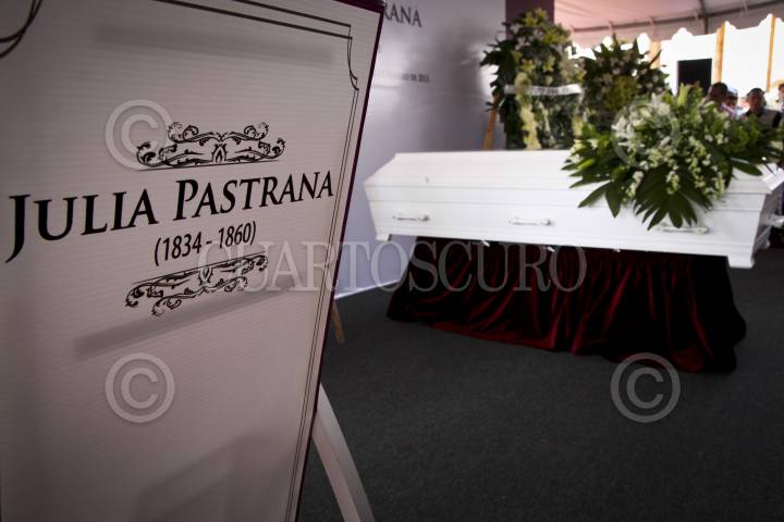 SINALOA DE LEYVA, SINALOA, 12FEBRERO2013.- En una ceremonia oficial fueron sepultados en el panteón municipal los restos de Julia Pastrana, mejor conocida como la "mujer mono", después de de una misa donde se le rindió homenaje a dicha artista Sinaloense. FOTO: RASHIDE FRIAS /CUARTOSCURO.COM