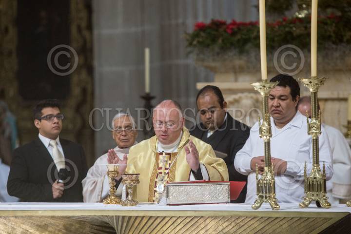 CIUDAD DE MÉXICO, 31DICIEMBRE2016.- El padre Julián López llevó a cabo la misa para dar gracias de fin de año en la Catedral de Zócalo capitalino a las 20:00 horas. FOTO: TERCERO DÍAZ /CUARTOSCURO.COM
