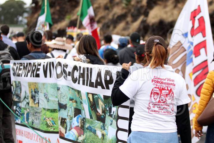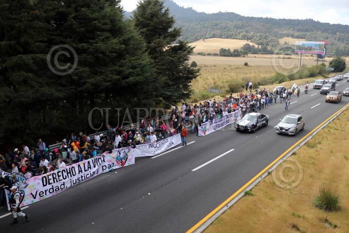 Llegada de la Caminata por la Verdad, la Justicia y la Paz al poblado de Coajomulco.
