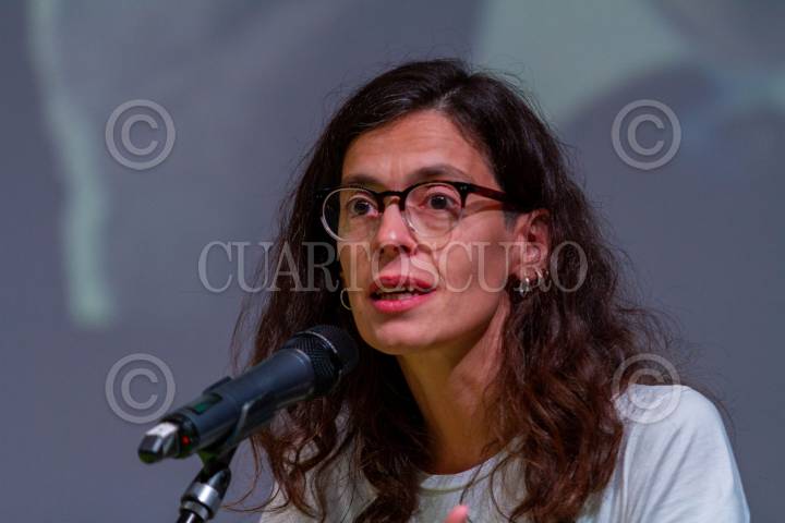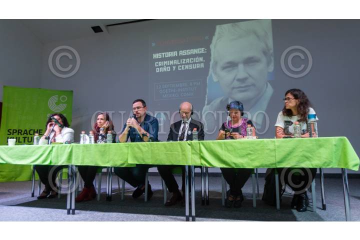 Fernanda Hopenhaym, representante de la organización PODER, en el conversatorio "Historia Assange"