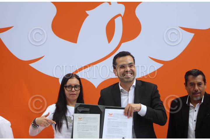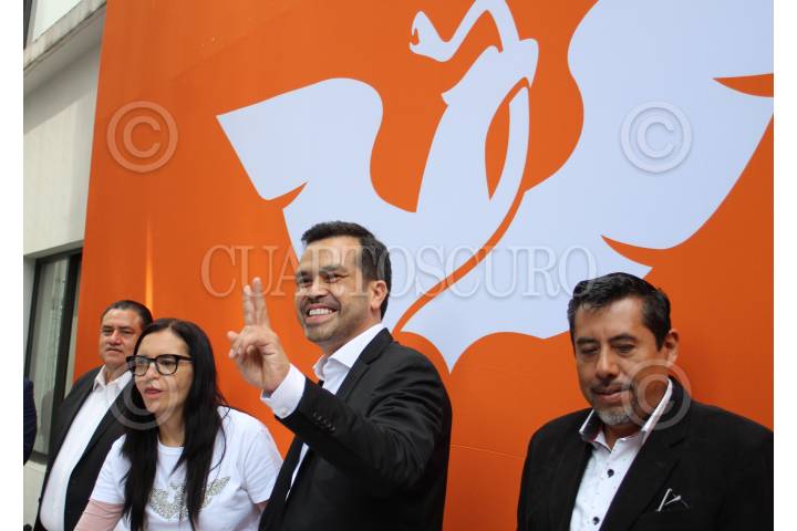 CIUDAD DE MÉXICO, 19NOVIEMBRE2024.- Julieta Macías Rábago, presidenta de la Comisión Nacional de Convenciones y Procesos Internos de Movimiento Ciudadano, Jorge Álvarez Máynez y Alberto Tlaxcalteco durante la entrega de documentación del ex candidato presidencial par registrarse cómo aspirante a la dirigencia nacional ante el partido. FOTO: GALO CAÑAS/CUARTOSCURO.COM