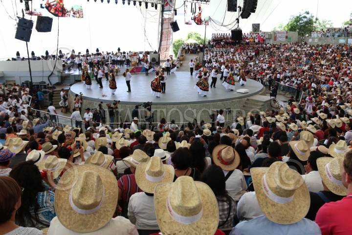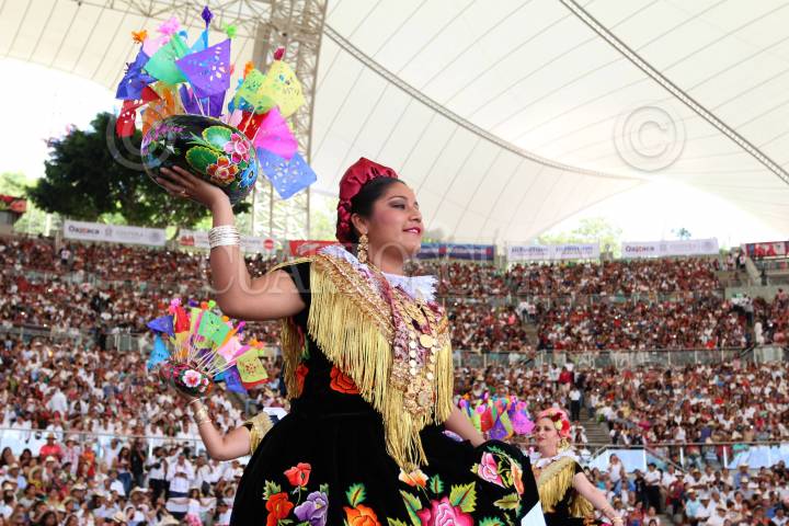 OAXACA, OAXACA, 23JULIO2018.- En punto de las 10 horas dio inicio la primera edición de la Guelaguetza 2018, fiesta encabezada por la representación de la Diosa Cénteotl, Francisca Pérez Bautista, el gobernador del estado, Alejandro Murat y su esposa Ivette Morán de Murat presidenta honoraria del Sistema DIF Estatal. Esta edición inició por primera ocasión con la Danza de la Pluma presentada por Teotitlán del Valle, seguido de San Melchor Betaza. FOTO: ARTURO PÉREZ ALFONSO/ CUARTOSCURO.COM