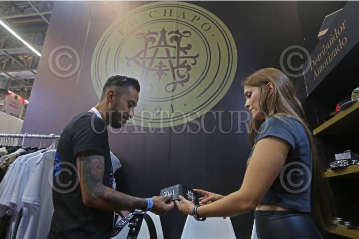 GUADALAJARA, JALISCO, 16JULIO2019.- Este martes en el marco del inicio de Intermoda 2019 que se celebra del 16 al 19 de Julio en Expo Guadalajara, se llevo a cabo el lanzamiento de la marca “El Chapo 701” inspirada en el narcotraficante Joaquín Guzmán Loera, según algunos medios la marca es propiedad de Alejandrina Guzmán hija del Capo sinaloense. FOTO: FERNANDO CARRANZA GARCIA / CUARTOSCURO.COM