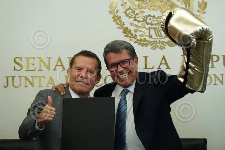 El boxeador mundial Julio César Chávez recibió un reconocimiento por su trayectoria por parte del senador Ricardo Monreal, coordinador de la JUCOPO en el Senado de la República