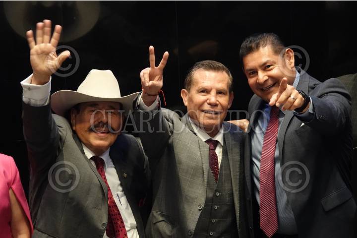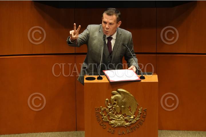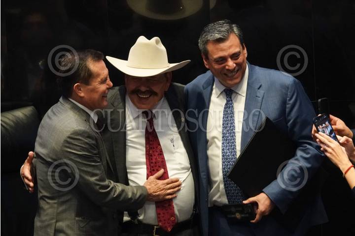 El senador Armando Guadiana mostró su sombrero firmado por el boxeador mundial Julio César Chávez durante la Sesión Ordinaria en el Senado de la República