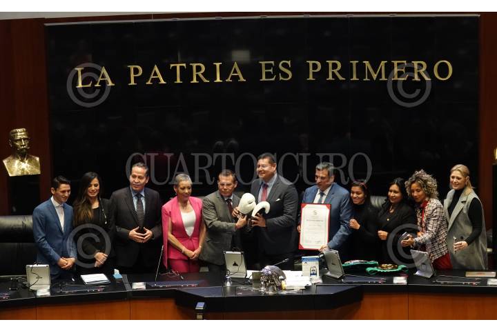 El boxeador mundial Julio César Chávez recibió un reconocimiento por su trayectoria en el pleno del Senado de la República por parte del presidente de la mesa directiva Alejandro Armenta