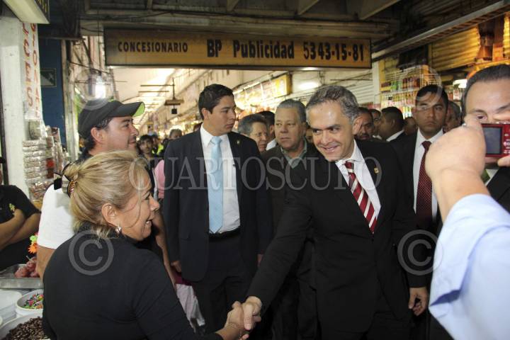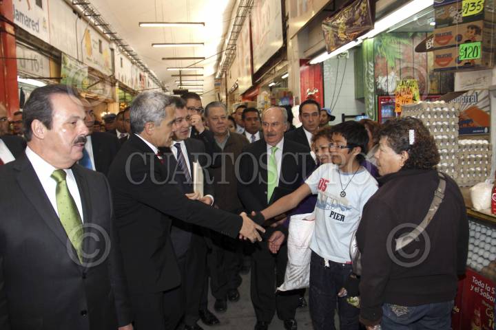 MÉXICO, D.F., 05MARZO2013.- Miguel Ángel Mancera, Jefe de Gobierno, saluda a comerciantes de la Central de Abastos, el mandatario visitó este mercado en el marco de la firma del convenio entre la Central de Abastos y la Secretaría de Agicultura. FOTO: CUARTOSCURO.COM