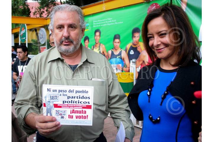 MÉXICO, D.F., 30JUNIO2009.- Marco Rascon y Purificación Carpinteiro, durante la asamblea nacional por el voto nulo, que se realizo en el Deportivo Villa Olímpica, en esta asamblea se reunieron distintas organizaciones sociales del país para refrendar su anulación del voto en las próximas elecciones del 5 de julio. FOTO: RICARDO CASTELAN/CUARTOSCURO.COM