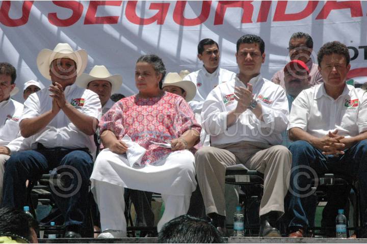 RÍO GRANDE, ZACATECAS, 30MAYO2010.- Miguel Alonso Reyes, candidato del PRI a gobernador del estado junto a Beatriz Paredes, diputada y presidenta nacional del PRI durante un mitin realizado con miras a las elecciones del próximo 4 de julio. FOTO: CUARTOSCURO.COM