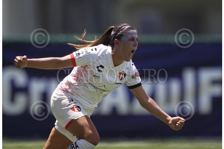 Festejo de gol de Julissa Dávila de Atlas durante el partido de fútbol correspondiente a la jornada 13 del torneo Clausura 2022 “Grita por la paz” de la Liga MX Femenil entre Cruz Azul vs Atlas en el Centro de Alto Rendimiento La Noria.