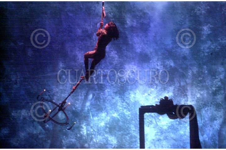 MEXDF13MAYO2004.- La contorcionista Raphael Boitel James Thierrée de la compañia The Junebug Symphony durante su acto de acrobacia durante la presentacion en el teatro Julio Castillo con su espectaculo (invitación a un sueño profundo). FOTO: Eunice Adorno/CUARTOSCURO.COM