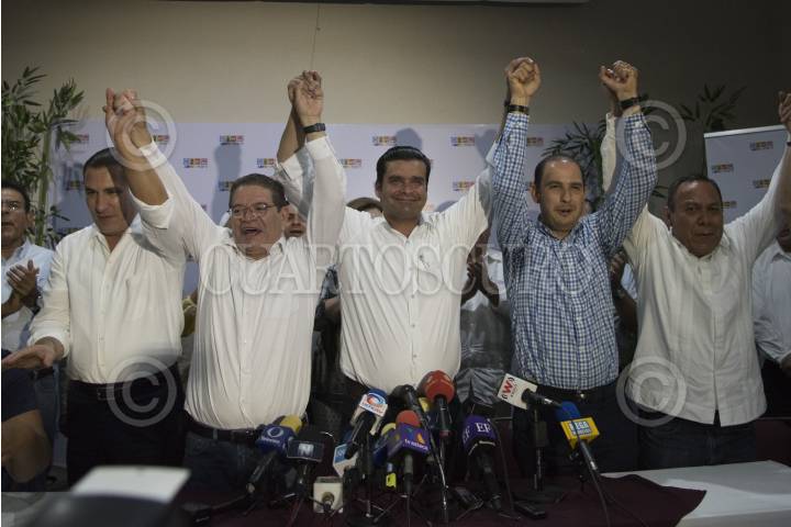 TEPIC, NAYARIT, 04JUNIO2017.- Toño Echevarría, candidato ala gubernatura de Nayarit, acompañado de sus padres y varios funcionarios públicos de la "Alianza por ti", del PAN, PT, PRD, y PRS, ofreció una conferencia de prensa para avisar su triunfo electoral. FOTO: TERCERO DÍAZ /CUARTOSCURO.COM