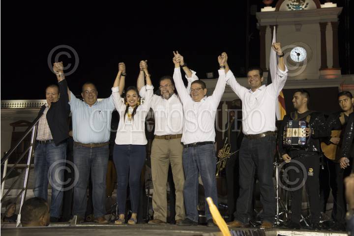 TEPIC, NAYARIT, 04JUNIO2017.- Toño Echevarría, candidato ala gubernatura de Nayarit, por la coalición PAN, PRD, PT, y PRS, realizó su festejo de victoria en la Plaza Bicentenario en la zona centro de la ciudad. En el evento estuvo acompañado por su familia y varios funcionarios públicos. FOTO: TERCERO DÍAZ /CUARTOSCURO.COM