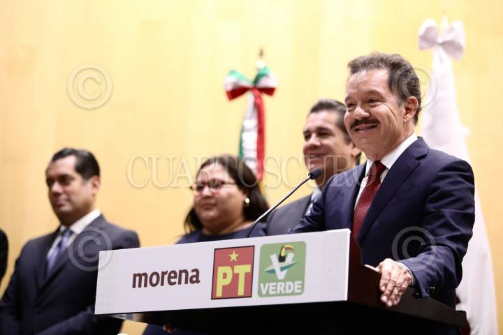 Alfonso Ramírez Cuellar, ex dirigente nacional de Morena durante la presentación del Frente Juntos por un mejor Estado de México es Posible.
