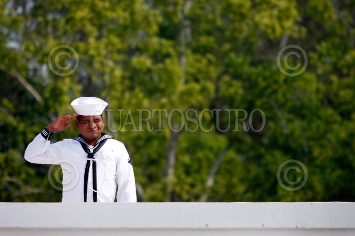 ANTÓN LIZARDO, VERACRUZ, 21ABRIL2011.- Aspectos de la tradicional jura de bandera y entrega de espadines a miembros de la Heroica Escuela Naval Militar en el marco de la conmemoración de la defensa del Puerto de Veracruz un 21 de Abril de 1914. FOTO: FÉLIX MÁRQUEZ/CUARTOSCURO.COM
