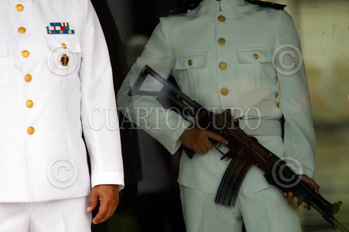 ANTÓN LIZARDO, VERACRUZ., 21ABRIL2011.- Francisco Zaynez Mendoza, Secretario de Marina al termino de la ceremonia en la que 252 cadetes del 1er. Año realizaron la tradicional Jura de Bandera en las instalaciones de la Heroica Escuela Naval Militar. FOTO: GUILLERMO PEREA/CUARTOSCURO.COM