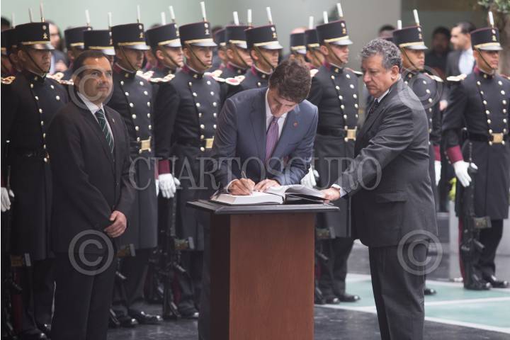 CIUDAD DE MÉXICO, 13OCTUBRE2017.- Justin Trudeau, primer ministro de Canada, asistió como invitado especial al Senado de la República, acompañado de Ernesto Cordero, presidente de la mesa directiva del recinto legislativo. Asimismo, acudieron otros funcionarios públicos de diversos niveles. Durante su estancia en el Senado, Trudeau firmó el libro de visitas especiales. FOTO: TERCERO DÍAZ /CUARTOSCURO.COM