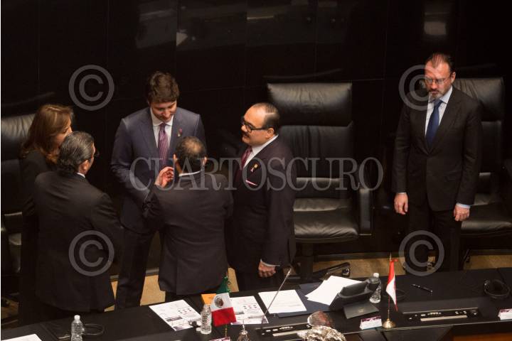 CIUDAD DE MÉXICO, 13OCTUBRE2017.- Justin Trudeau, primer ministro de Canada, asistió como invitado especial al Senado de la República, acompañado de Ernesto Cordero, presidente de la mesa directiva del recinto legislativo. Asimismo, acudieron otros funcionarios públicos de diversos niveles como Jorge Ramírez Marín, presidente de la mesa directiva en la Cámara de Diputados, y Luis Videgaray, secretario de Relaciones Exteriores, entre otros. FOTO: TERCERO DÍAZ /CUARTOSCURO.COM