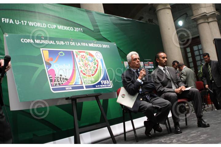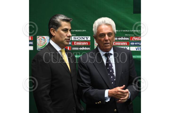 MÉXICO, D.F., 03MARZO2011.- Justino Compean, director de la Federación Mexicana de Fútbol y Raul Gutierrez, director técnico de la Selección Mexicana Sub 17 durante la presentación del logotipo de la Copa Mundial Sub 17, Sede Ciudad de México que se realizo en el patio del Antiguo Palacio de Ayuntamiento. FOTO: RODOLFO ANGULO/CUARTOSCURO.COM